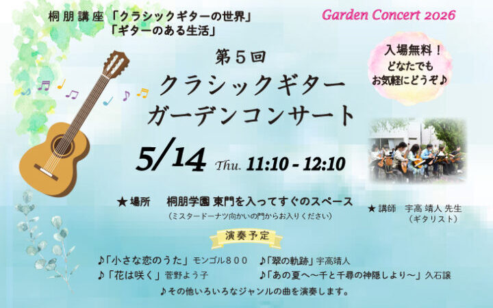 ギターコンサートは5月14日(木)に開催いたします。