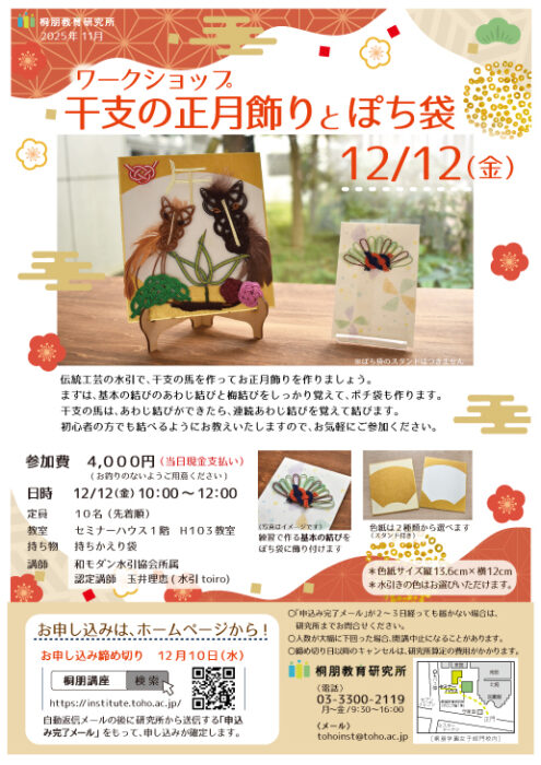 TOP > 桐朋講座・イベント > 美術・クラフト > 干支の正月飾りとぽち袋-ワークショップ 2025.12.12