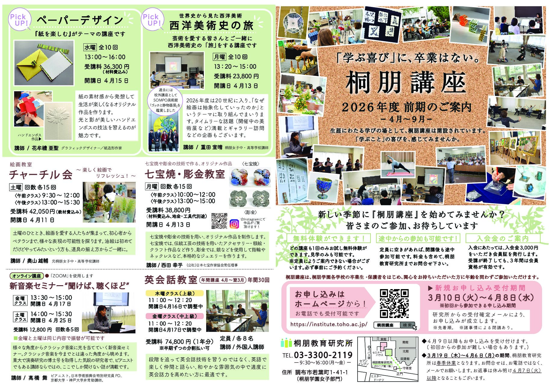 4月からスタートする、2026年前期の桐朋講座のご案内です。